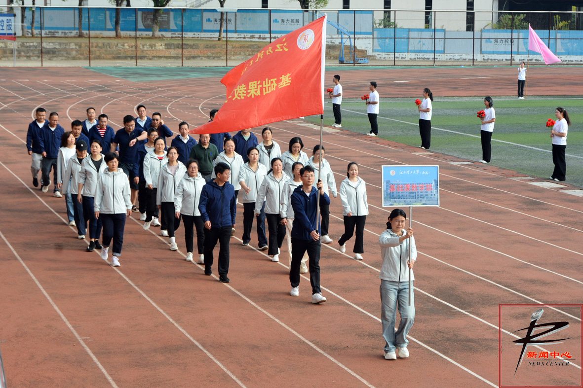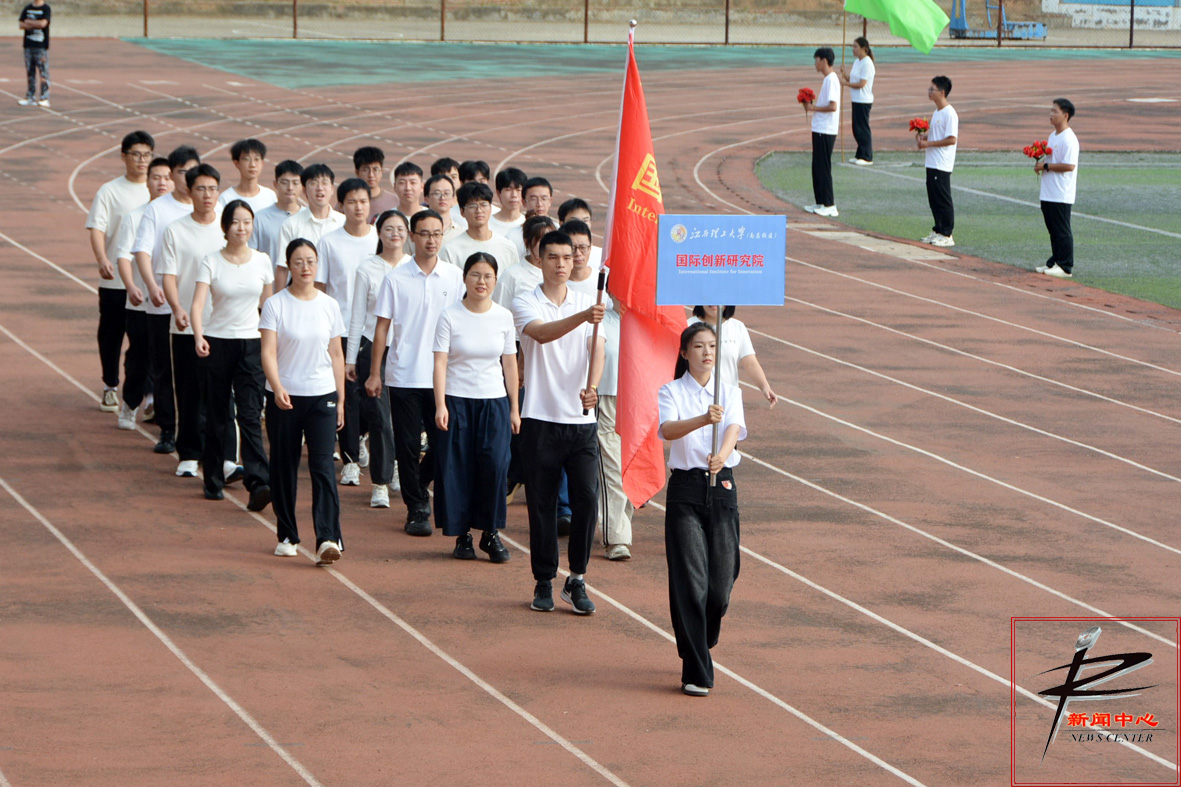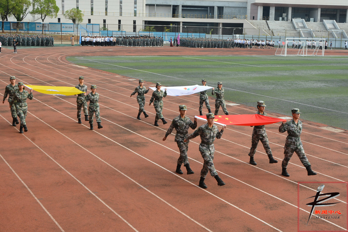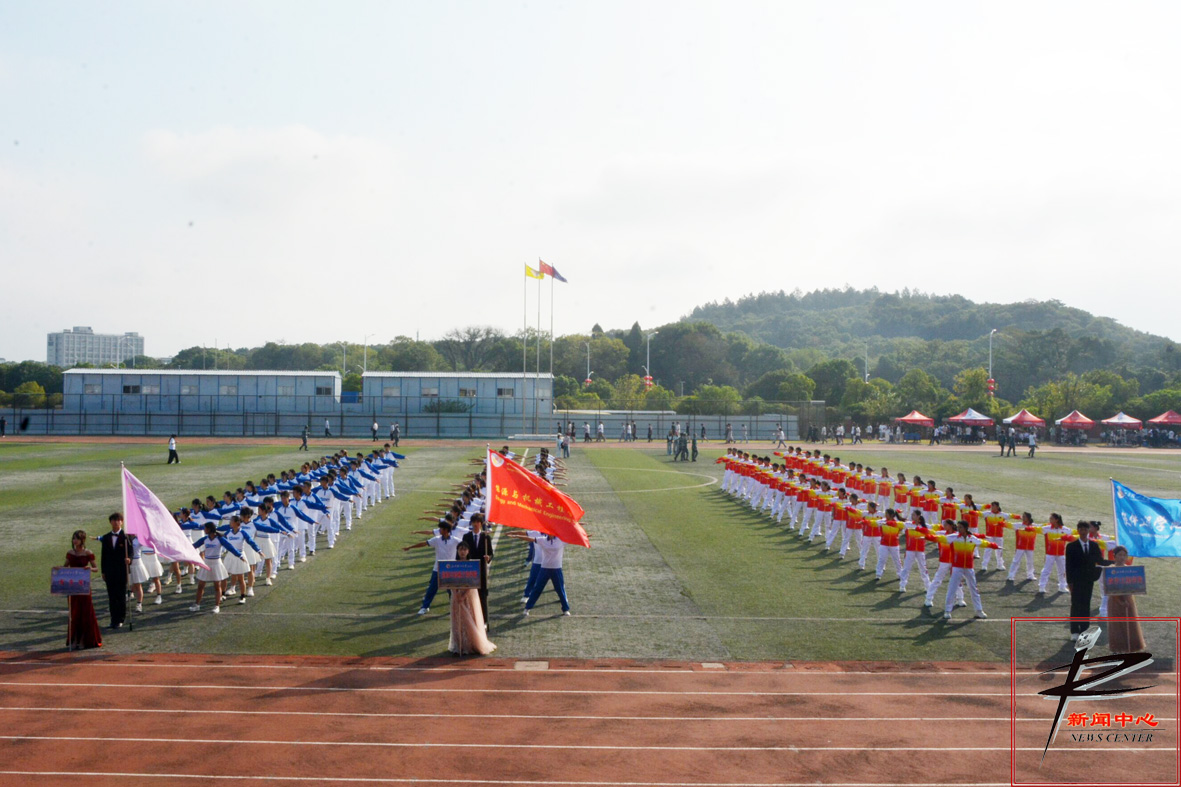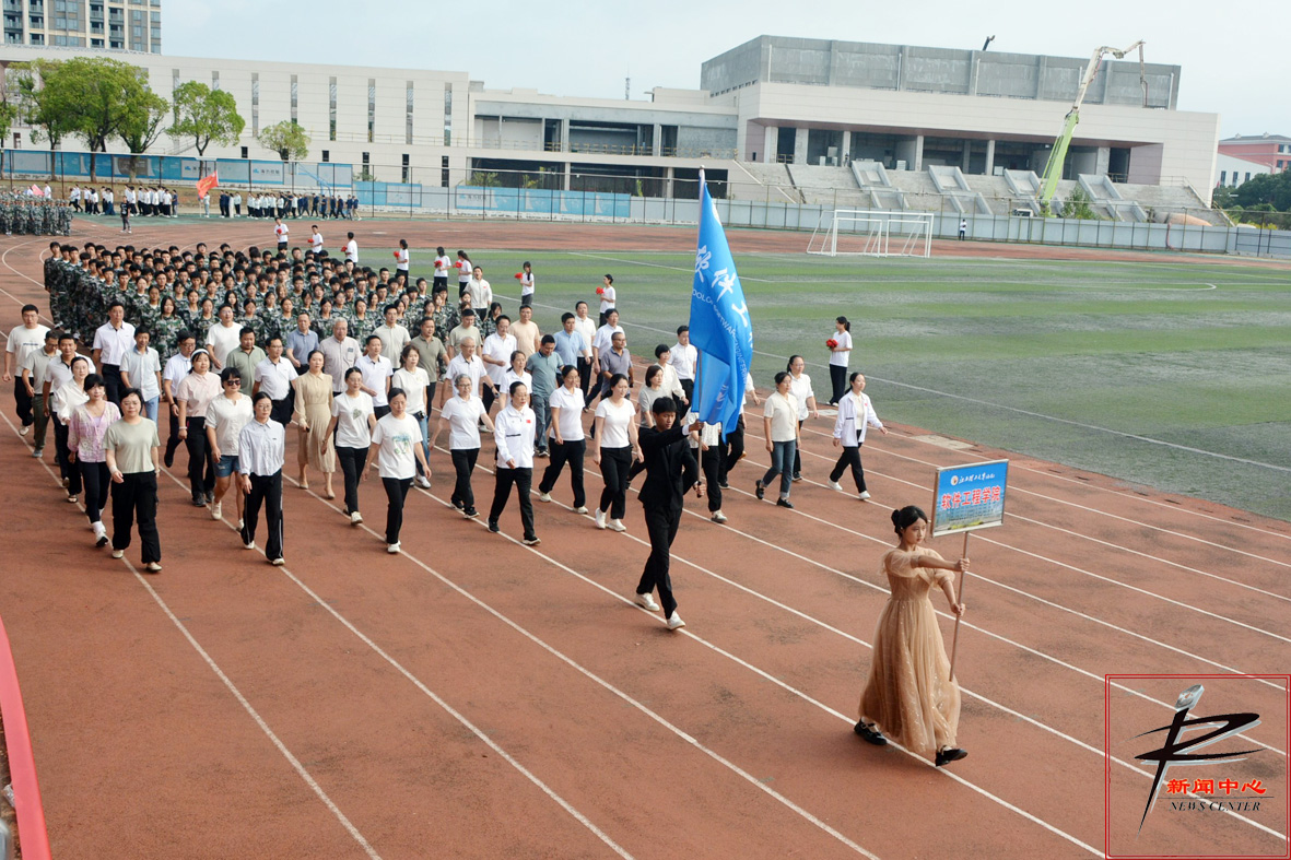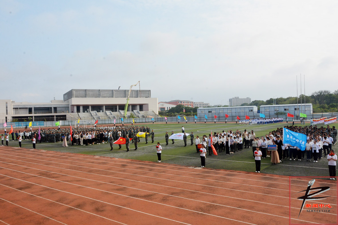 在激昂的《运动员进行曲》中,国旗队、校旗队、会徽队、鲜花队和彩旗队依次入场,步伐铿锵。各学院方阵精神抖擞、队列整齐,尽显在赛场上勇夺胜利的坚定信念,展现出师生昂扬向上的精神风貌,赢得了阵阵掌声。方阵入场之后,全体起立,升国旗,奏唱国歌。升校名旗、校徽旗,奏唱校歌。