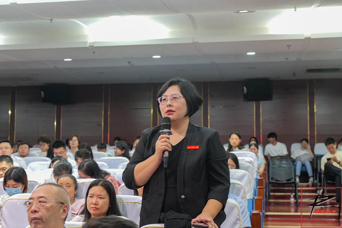 我校能机学院辅导员董玉婷提问:以学生问题为基点的综合性学习和有计划性的专业性的宽口径学习之间应该如何平衡和匹配。夏晓虹教授表示两者没有绝对更优,关键是按阶段平衡:低年级用宽口径学习打基础,高年级用问题导向学习深化应用,让系统知识支撑实践,具体问题反推知识补充。