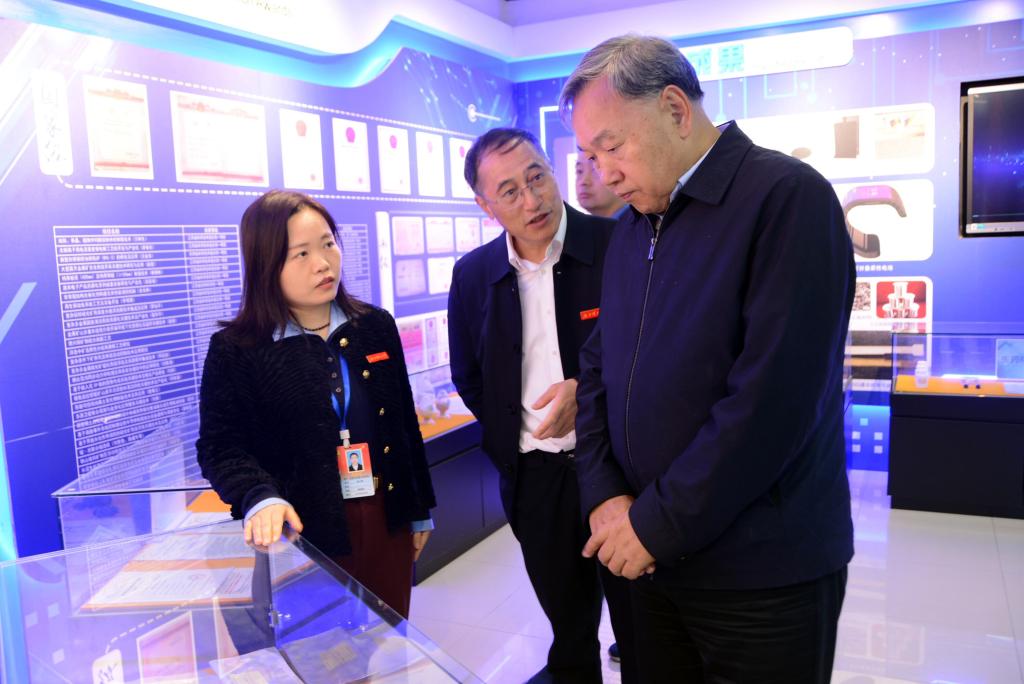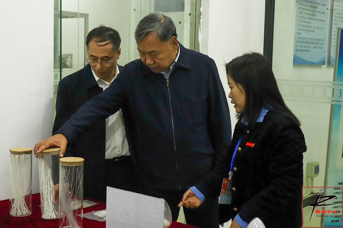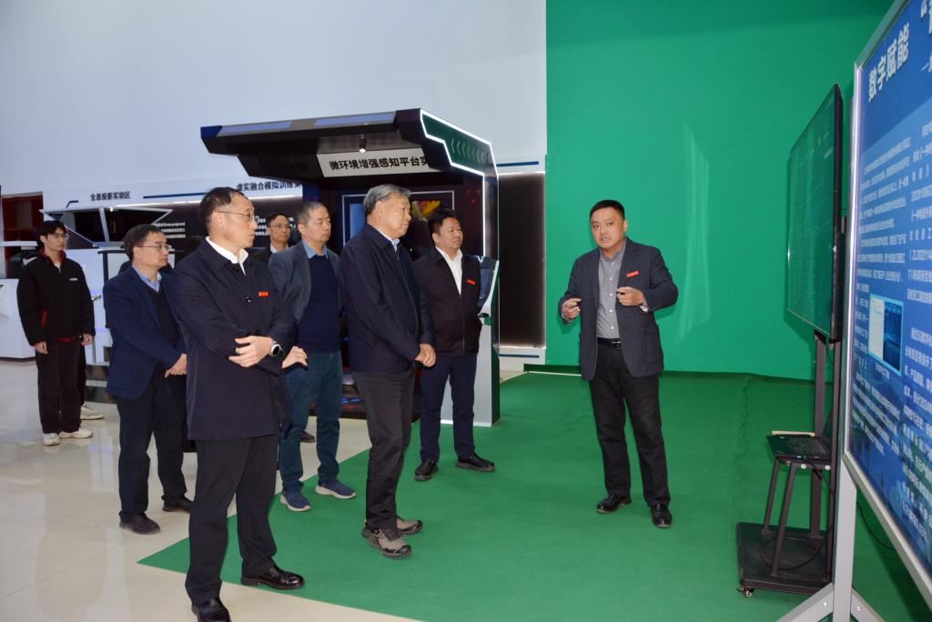 陆桂华一行观看了学校校情片,直观了解学校的发展脉络与办学特色。随后,调研团队前往科技展厅,全面听取学校在人才培养、学科建设、科研创新等方面的成果汇报。在植入医疗器械增材制造江西省重点实验室,详细听取了实验室的建设历程、核心技术突破及成果转化情况。其完善的科研设施与显著的转化成效,赢得了陆桂华一行的高度称赞。随后,陆桂华一行走进南昌市虚拟数字工厂与文化传播重点实验室,听取红色文化传播领域和实验室虚拟数字化工厂建设两大核心研究方向的介绍。调研过程中,陆桂华一边听汇报、一边看展品,不时与现场负责人交流探讨,对江西理工大学近年来在人才培养、科研创新、成果转化等方面取得的显著成就给予充分肯定。他指出,江西理工大学立足江西产业特色,深耕有色金属、稀土等关键领域,既培养了大批贴合行业需求的优质人才,又产出了诸多兼具技术高度与应用价值的科研成果,尤其是在产学研融合方面成效显著,为区域经济发展和国家产业升级作出了重要贡献。同时,他鼓励学校继续发挥学科优势,持续加强核心技术攻关,深化校企合作、校地协同,进一步提升科研成果转化效率,在稀土及关键矿产领域持续发力,打造更多标志性成果。
