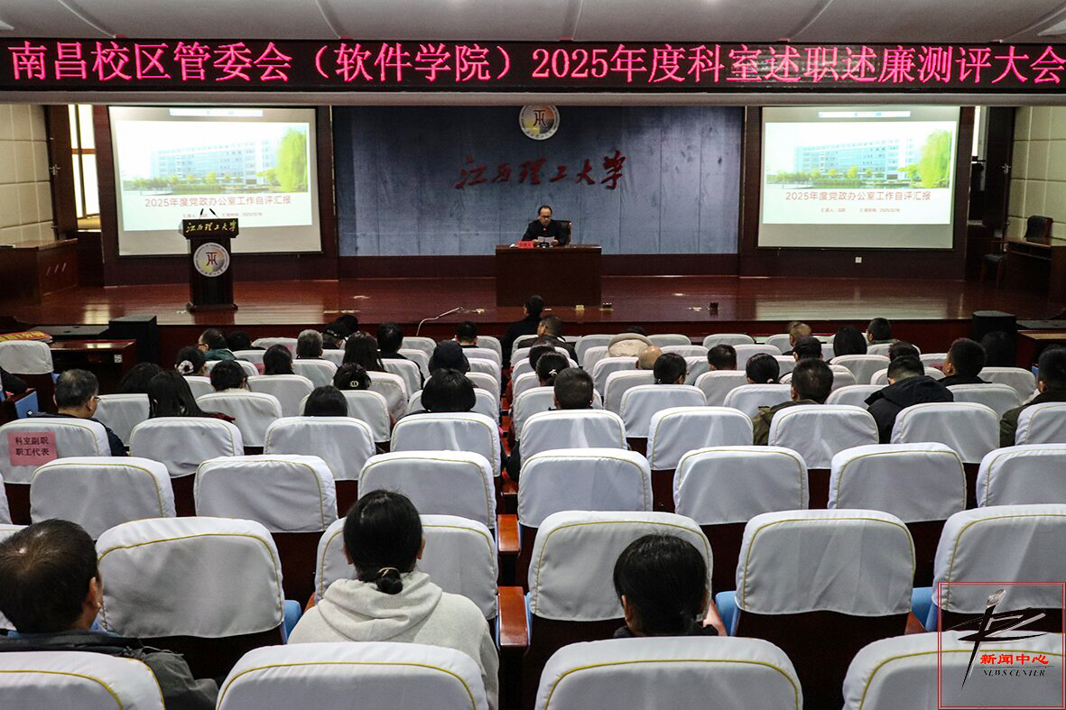 本网讯(文/陈凯玲 图/方婷婷、殷江林)12月18日下午,南昌校区管委会(软件学院)在图书信息综合楼学术报告厅开展2025年度科室述职述廉测评大会。南昌校区党委组织人事科科长、宣传统战办公室主任钟毅勤主持大会。