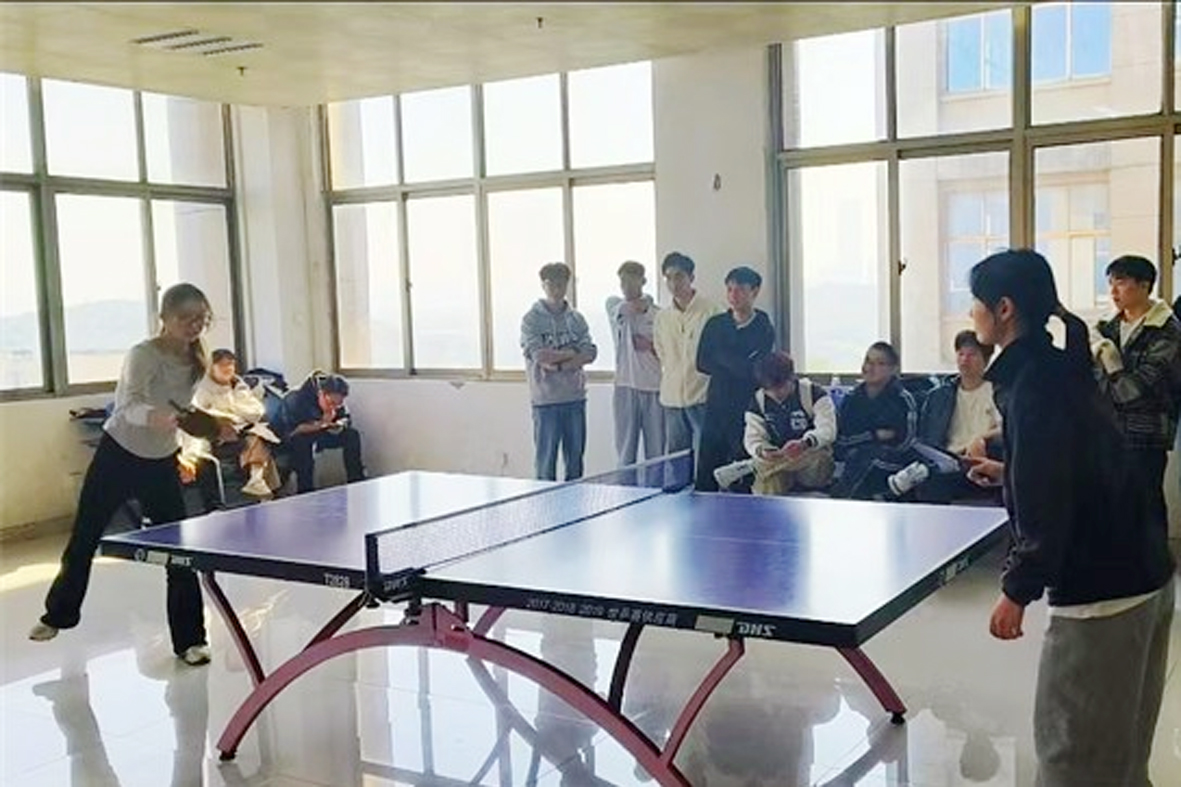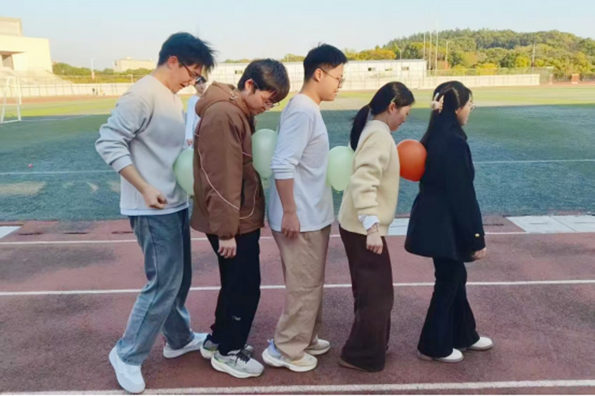 乒乓球台前,选手们沉着冷静、攻守有度,小小银球在快速对拉中传递着专注与激情。羽毛球赛场高手云集,轻盈跃动、精准扣杀,尽显速度与技巧的完美结合。篮球赛场上,队员们默契配合、奋力拼搏,每一次突破与投篮都点燃全场热情,彰显团队精神与青春力量。趣味运动会更是欢声笑语不断。“气球蜈蚣”“盲人剑客”等创意项目妙趣横生,不仅考验协作能力,更拉近了同学间的距离。