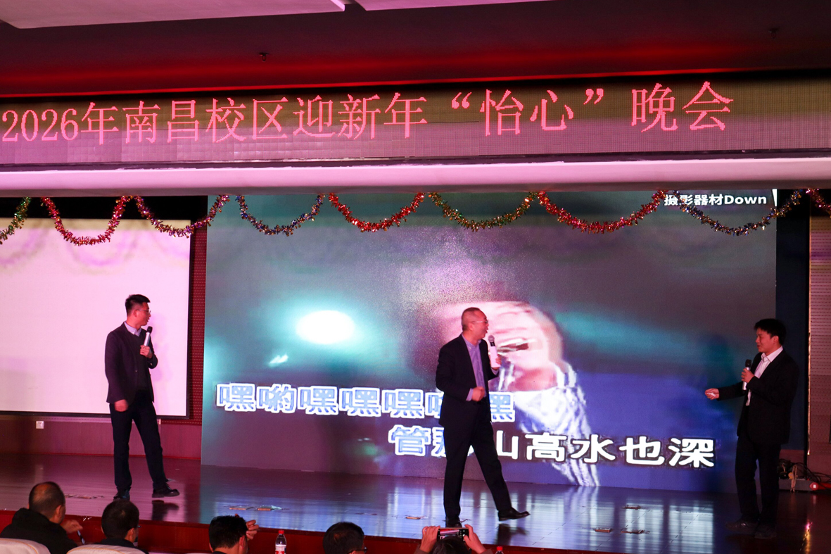 本网讯(文/胡心妍 图/李芷涵)12月31日晚,南昌校区管委会在图书信息综合楼一楼报告厅举行2026年迎新年“怡心”晚会。南昌校区全体教职工和家属齐聚一堂,共庆新年。