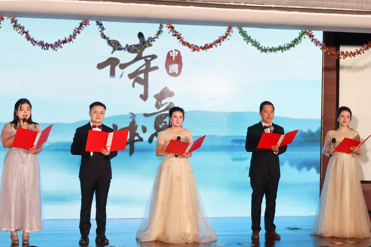 晚会在能源与机械工程学院辅导员董玉婷演唱的《幸福山歌》中拉开帷幕,她的歌声诠释了新年的幸福即心中的幸福。基础课教学部教师带来的古典舞《半壶纱》尽显东方韵味。而国际创新研究院伊磊的《精忠报国》独唱更是点燃全场的家国情怀。来自教职工家庭的周子昕和张可歆两位小朋友的爵士舞《Nobody+圣诞舞力派对+舞蹈串烧》则展现了小朋友的明媚活力。商学院三位教师联袂演出的《壮志在胸》抒发了他们对新年的美好祝愿。软件工程学院五位教师朗诵的《诗意中国》,传递了对伟大祖国美好而深沉的爱。基础课教学部钟志东老师的歌曲《爱火烧不尽》点燃了心中对事业与家人的永不熄灭的爱火。商学院聂烜和何槟江的相声《我要当卷王》笑声不断,赢得阵阵掌声。最后软件工程学院肖仁智老师演唱的一首《海阔天空》唤起了许多人的青春共鸣。