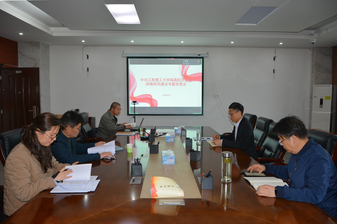 本网讯(文、图/饶振鹏)3月31日下午,南昌校区党委在图书信息综合楼第二会议室召开师德师风建设专题会议。校党委常委、副校长、南昌校区党委书记董冰岩主持。南昌校区党委委员和相关部门负责人出席。