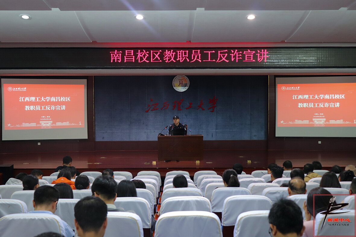本网讯(文/胡心妍 图/李芷涵)4月21日下午,南昌校区管委会在图书信息综合楼学术报告厅举行反诈宣讲,特邀经开区双港派出所社区民警万克菲就电信诈骗的相关知识及防范技巧进行专题宣讲。南昌校区全体教职工参加。南昌校区管委会保卫科科长丁兆明主持。